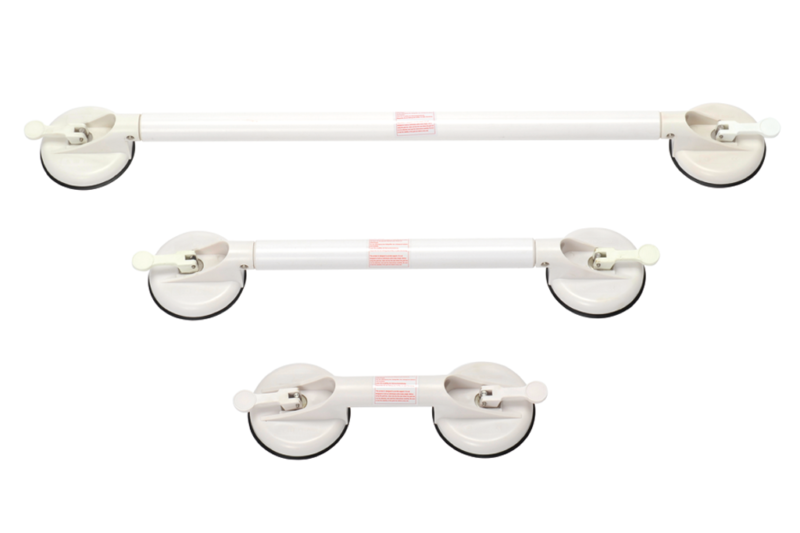 Ook zijn er wandbeugels op zuignap dit voor als u liever niet wilt of kunt boren, er zijn hiervan ook welke met een indicator erop. De indicator geeft aan wanneer de wandbeugel met zuignap goed hangt. De tegels dienen altijd schoon en vetvrij te zijn voor het plaatsen en moeten geplaatst worden op een gladde tegel (niet in de voegen). Let echter wel op: de wandbeugel op zuignap dient naar verloop van tijd altijd herzien te worden of deze nog stevig en stabiel vast zit!