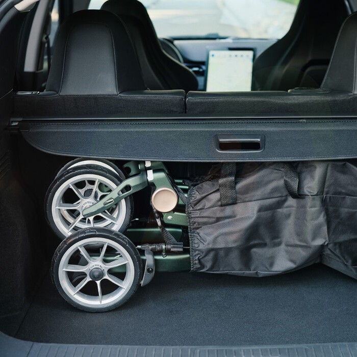 - Vouwsysteem: Opvouwbaar tot een ultracompact formaat dat zelfs in kleine auto’s past.