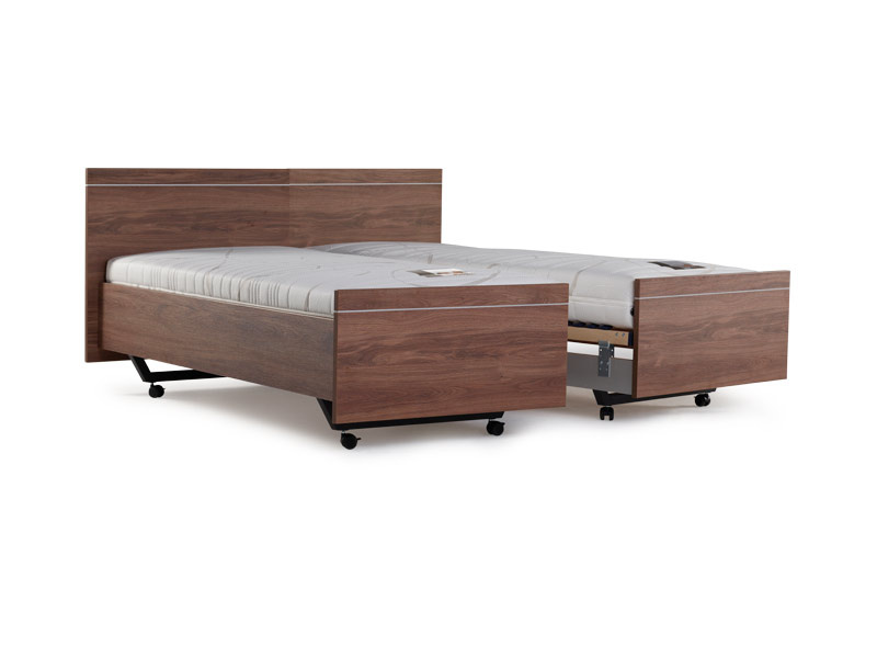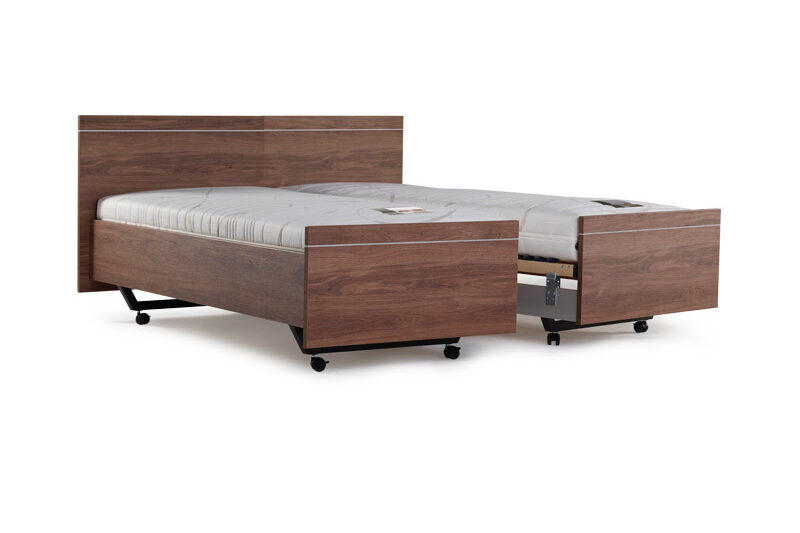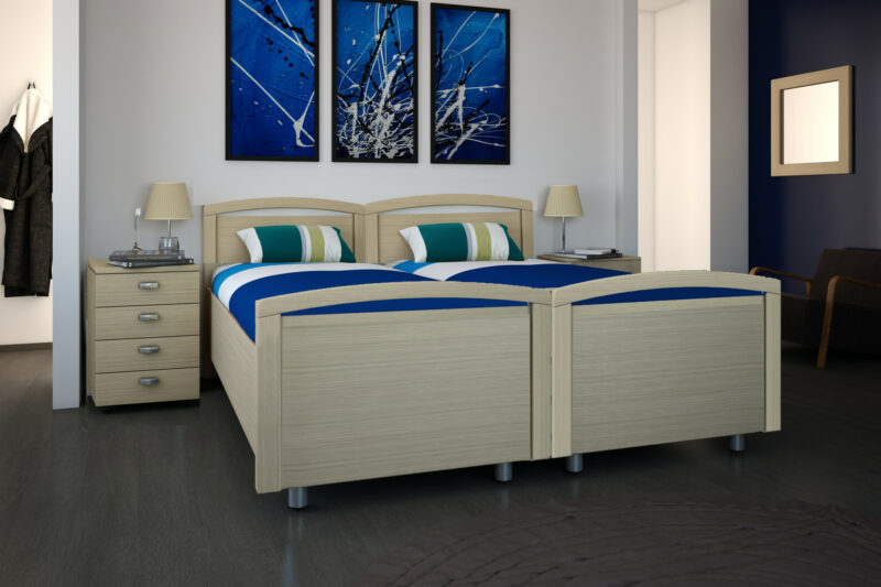 Buien het uiterlijk van een bed hebben we eigenlijk 2 soorten seniorenbedden, de 1 persoons seniorenbedden en de 2 persoons deelbare seniorenbedden. In beide gevallen is het grote voordeel dat u de bodemdragers in hoogte kunt stellen zodat u in combinatie met de lattenbodem en soort matras uw eigen ideale in en uitstap hoogte kunt bepalen. Ook is het een groot voordeel dat u zelf het type bodem kunt bepalen , zoals een vaste lattenbodem, elektrische lattenbodem of hoog laag elektrische lattenbodem. Kiest u voor 1 van de eerste 2 en heeft u later verzorging op bed nodig ? Dan kunt u gemakkelijk de hoog laag bodem laten plaatsen zonder dat u veel aanpassingen hoeft te doen en blijft u slapen op uw eigen matras in uw vertrouwde bed.