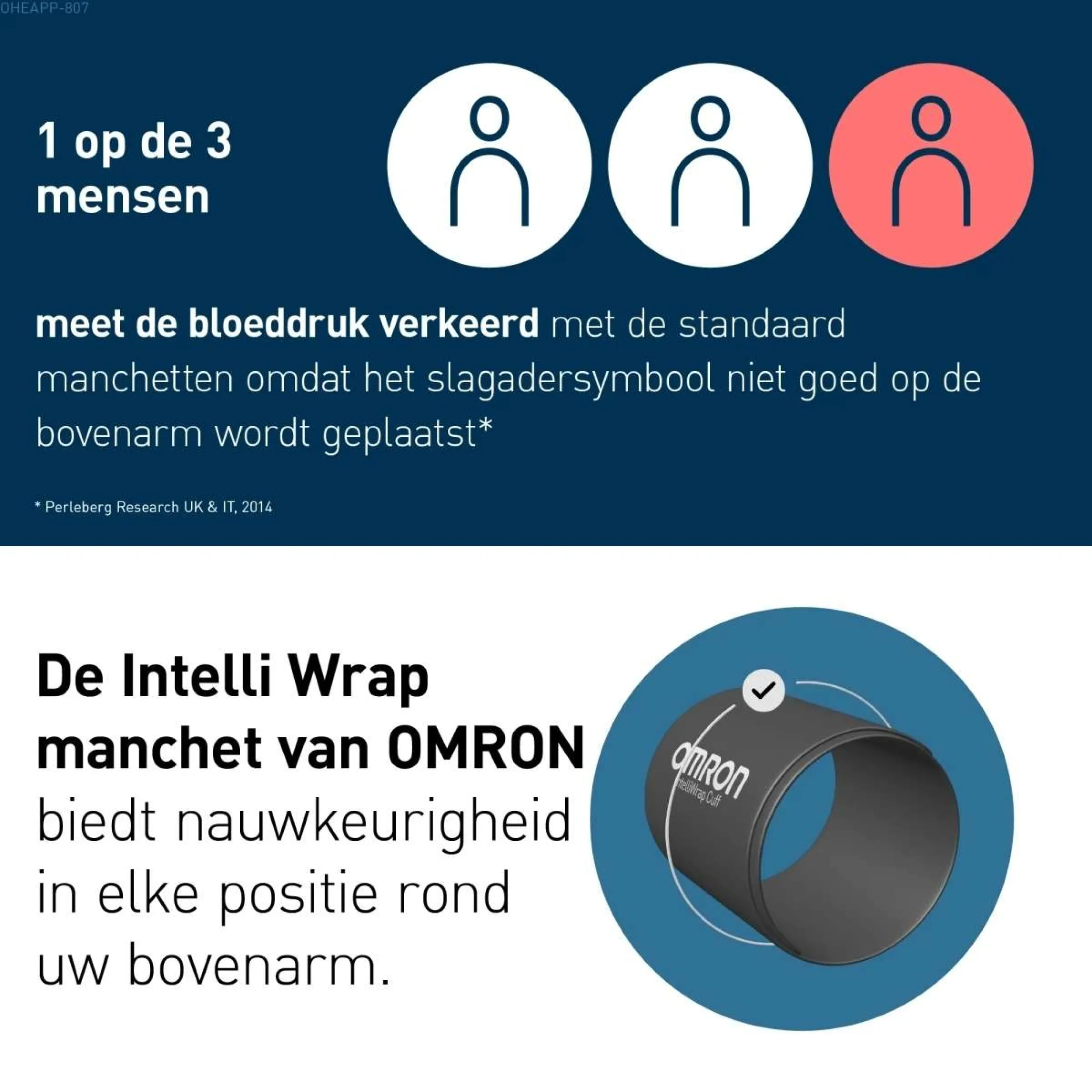 De meegeleverde IntelliWrap-manchet past om de meeste bovenarmen. De exacte maten vind je in de gebruiksaanwijzing.