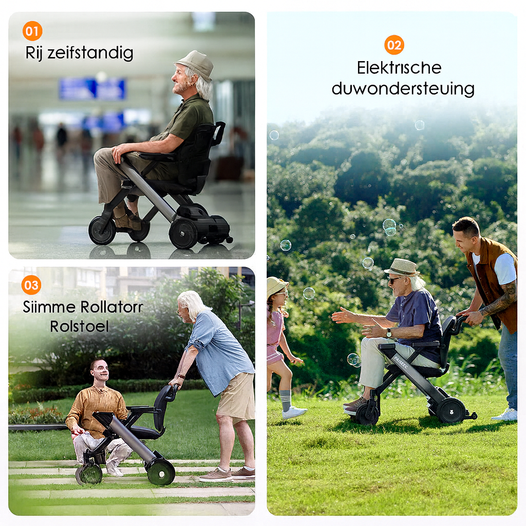 De Paiseec elektrische rolstoel 3-in-1 is dé oplossing voor wie flexibiliteit, comfort en ondersteuning zoekt in één slim hulpmiddel. Deze innovatieve rolstoel is niet alleen volledig elektrisch te gebruiken, maar ook inzetbaar als duwrolstoel met elektrische ondersteuning én als rollator met aandrijving. Zo kies je altijd de vorm die bij jouw situatie past – thuis of onderweg.