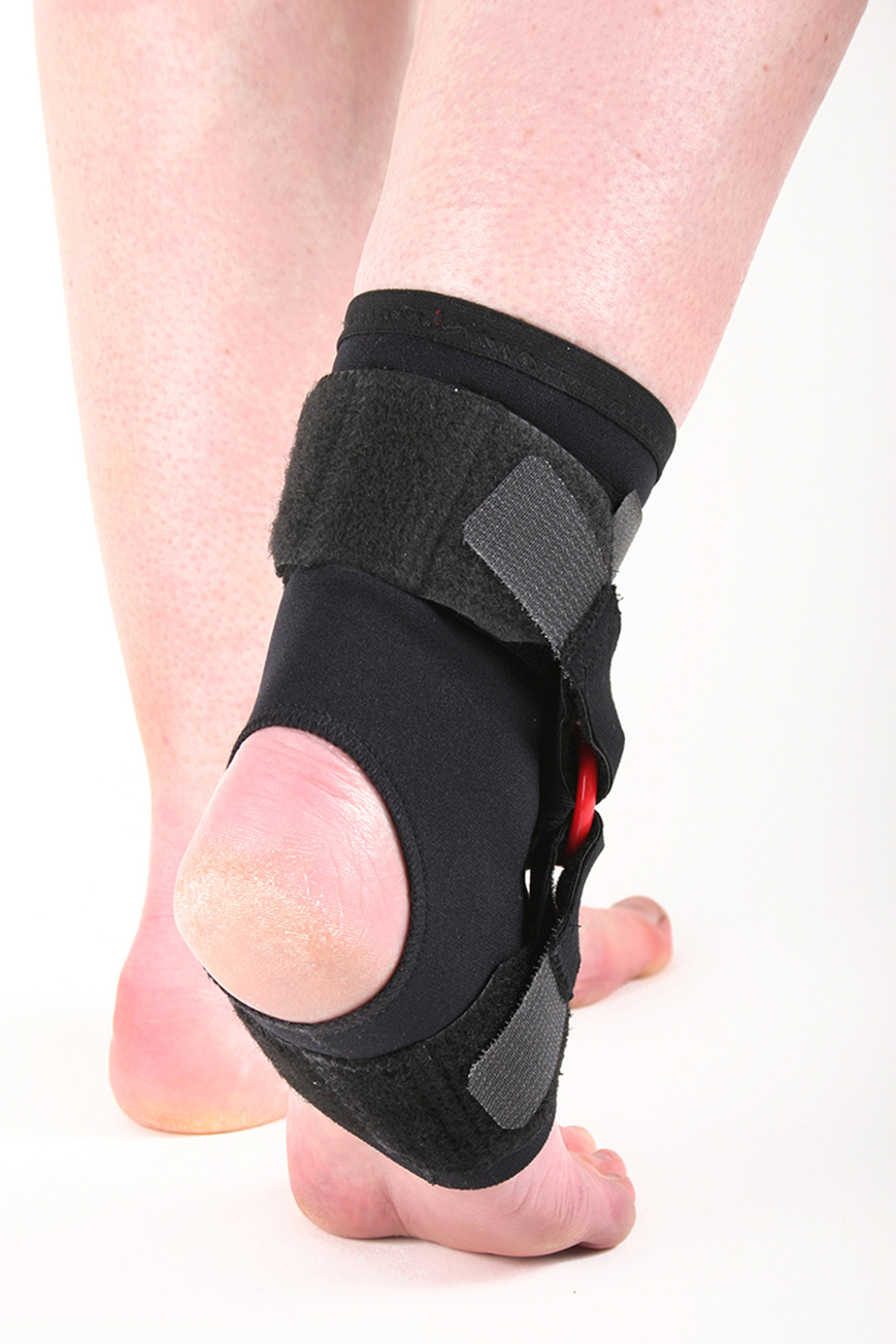 De banden van licht elastisch materiaal worden ten hoogte van de achillespees en onder de voet geplaatst en zorgen voor een verende en minder abrupte afremming. Het instellen van de afremming is optimaal mogelijk, zodat men op de lange duur dit steeds lichter kan instellen en langzaam kan afbouwen naar zonder enkelbrace te bewegen.