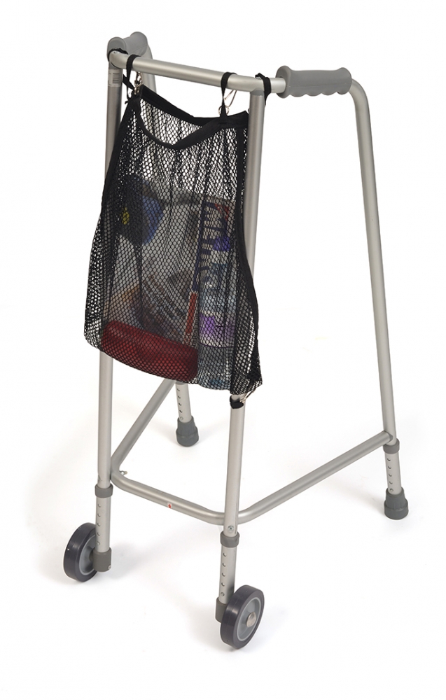 Boodschappennetje rolstoel – Universeel groot rolstoel boodschappennet dat met clips aan de boven- en onderzijde van een rolstoel te bevestigen is. Ideaal om boodschappen en persoonlijke spullen mee te nemen. Bijzonder praktisch boodschappennet voor aan de rolstoel. Tevens geschikt om te bevestigen aan een looprek !