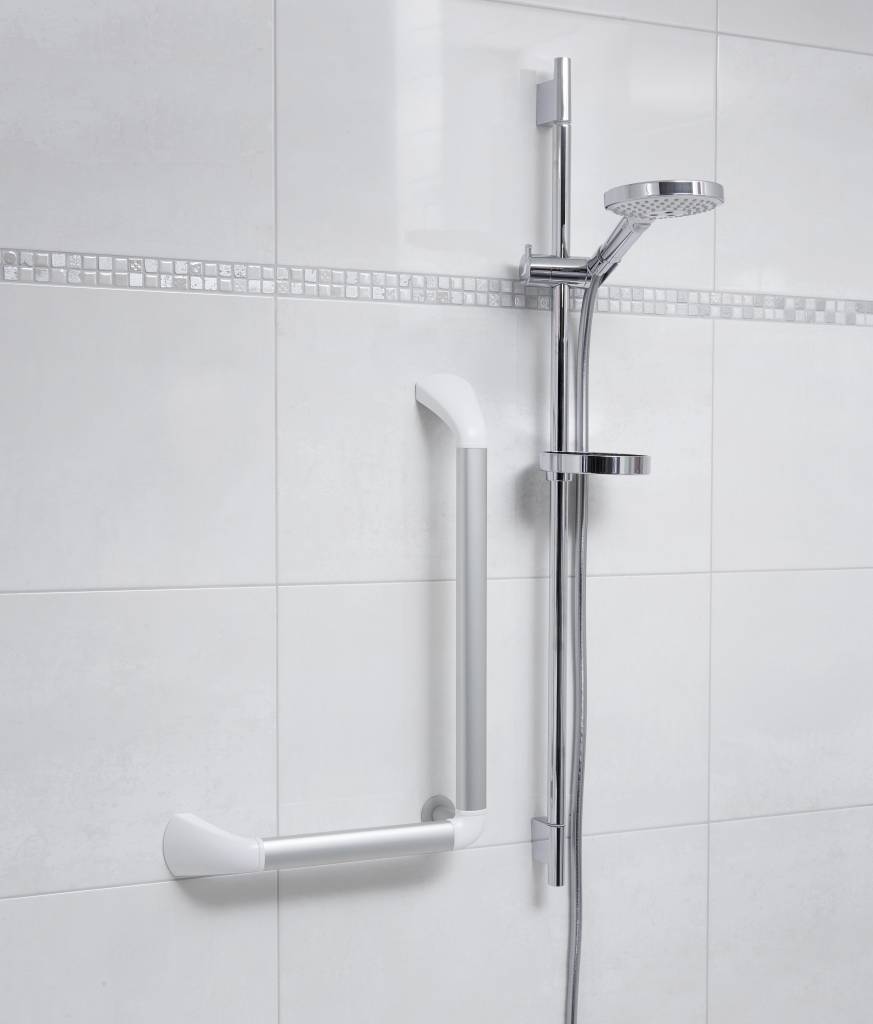De Secucare wandbeugel Douche & Toilet is verkrijgbaar in een hoek van 90 graden of 45 graden in de kleuren zwart of zilver. Deze waterbestendige beugels zijn gemaakt van aluminimum wat zorgt voor stevigheid en extra veiligheid onder de douche of in de badkamer. Het voordeel van een dubbele wandbeugel is dat u deze op verschillende manieren kunt vastpakken tijdens het douchen en wassen en bijvoorbeeld voor het uitstappen. De wandbeugels zijn zowel links om als rechts om naar wens te plaatsen. Dit is natuurlijk afhankelijk van uw situatie . U kunt de wandbeugel eenvoudig zelf in elkaar zetten en zo bepalen welke hoek de wandbeugel dient te hebben. Standaard word de beugel voor in de badkamer geleverd met RVS schroeven en bijhorende pluggen, Zodat u verzekerd bent van de juiste bevestiging materialen en een lange roestvrije levensduur .De schroeven zitten netjes weggewerkt onder de afdekkappen zodat de wandbeugel een strak geheel is en netjes is afgewerkt.