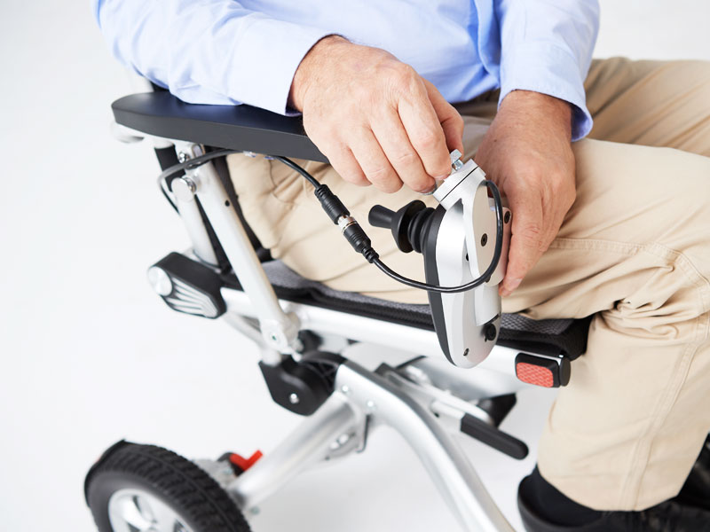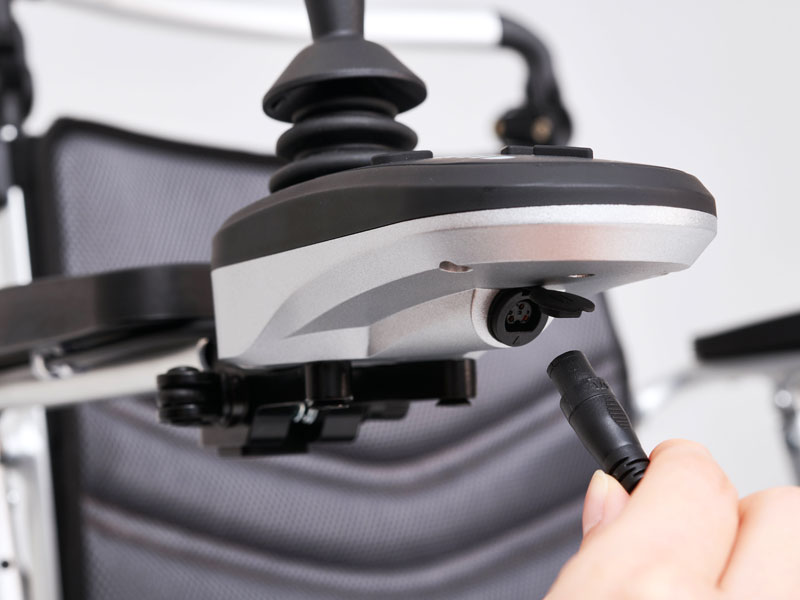 De overzichtelijke joystick zorgt voor een makkelijke besturing die voor iedereen eenvoudig te doen is . Deze is zowel links als rechts op de rolstoel te plaatsen.
