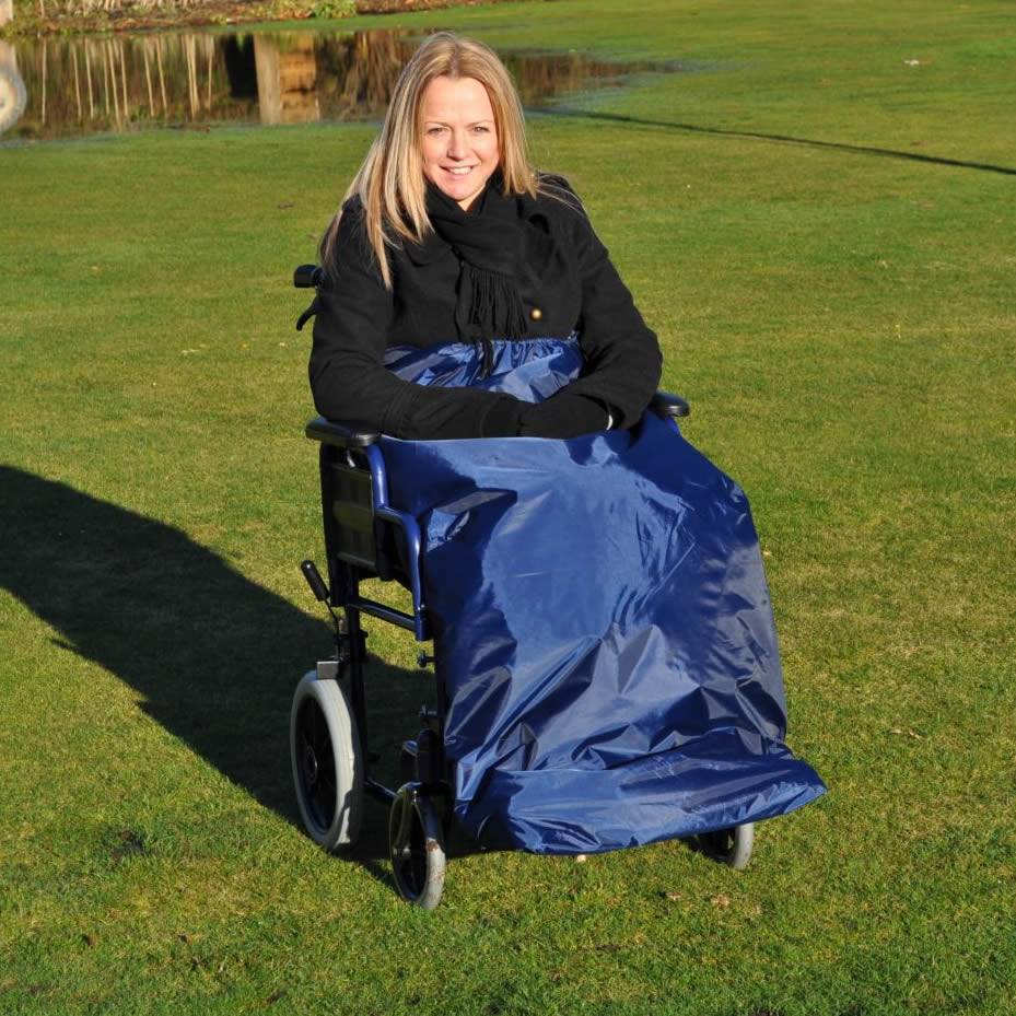 De Splash Wheely Apron houd uw benen lekker droog en warm. U plaatst de rolstoel beenbescherming over de bovenkant van uw benen en bevestigd deze vast met een gesp om uw middel of aan de armsteun van de rolstoel. Aan de onderzijde kunt u deze door de elastische basis aan de onderkant van de voetenplaat van de rolstoel plaatsen . De Splash Wheely Apron beenbescherming / beenkleed voor rolstoel gebruikers is geheel waterdicht. De Wheely Apron is in 1 lengte maat van 100 cm verkrijgbaar in de kleur blauw