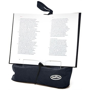 Prima hulp om een boek gemakkelijk te lezen. Op je schoot moet je het wel met een hand tegenhouden.