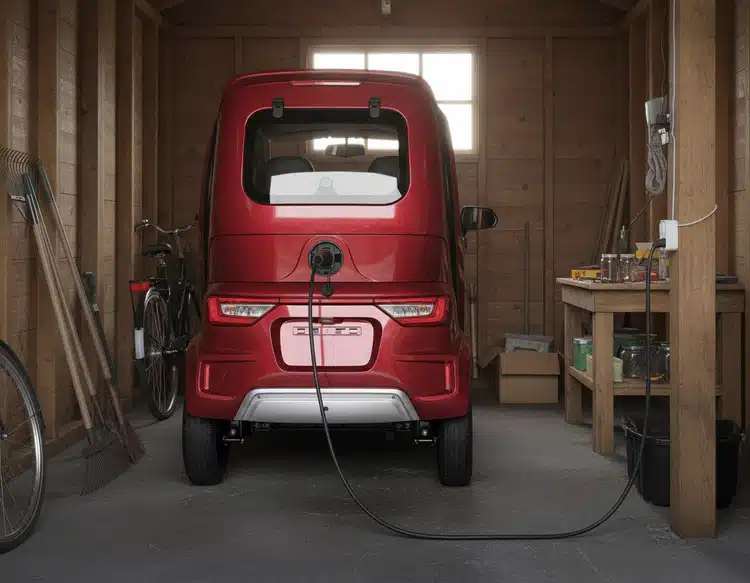 Geen laadpaal nodig. U laadt de TTZ 2.0 gewoon op via een normaal stopcontact in de schuur of garage. Binnen 6 tot 8 uur is de accu weer vol.
