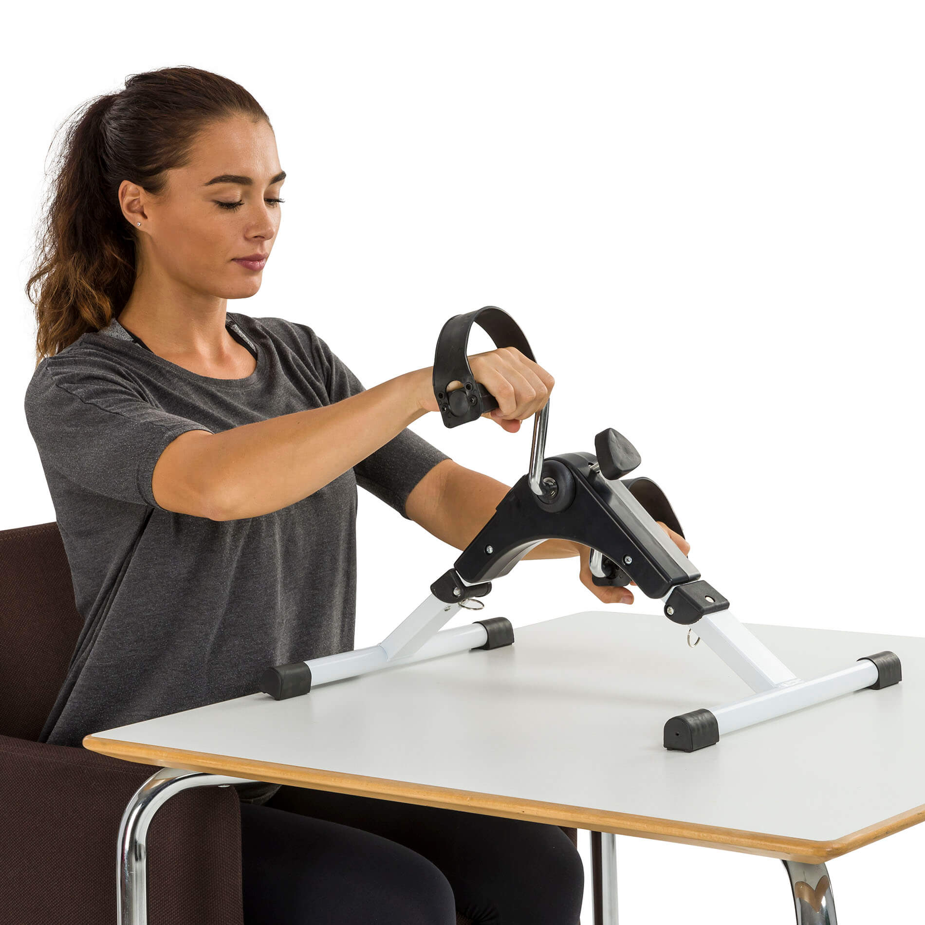 De Tunturi opvouwbare fietstrainer is geschikt voor mensen die weinig tot geen beweging meer hebben en veel al in huis zitten . De fietstrainer is eenvoudig voor de stoel te plaatsen en houd de spieren soepel en vergroot de spierkracht. Ook de bloedsomloop in de benen wordt gestimuleerd en zorgt voor een betere doorbloeding. De weerstand op de fietstrainer is instelbaar met een grote draaiknop boven op de opvouwbare stoelfiets. Begint u net dan adviseren wij om de weerstand zo minimaal mogelijk te houden. En per dag enkele keren een paar minuten te fietsen. Ook voor de armen is de opvouwbare fietstrainer te gebruiken, de fietstrainer wordt dan op tafel gezet en met uw armen maakt u dan de roterende beweging.