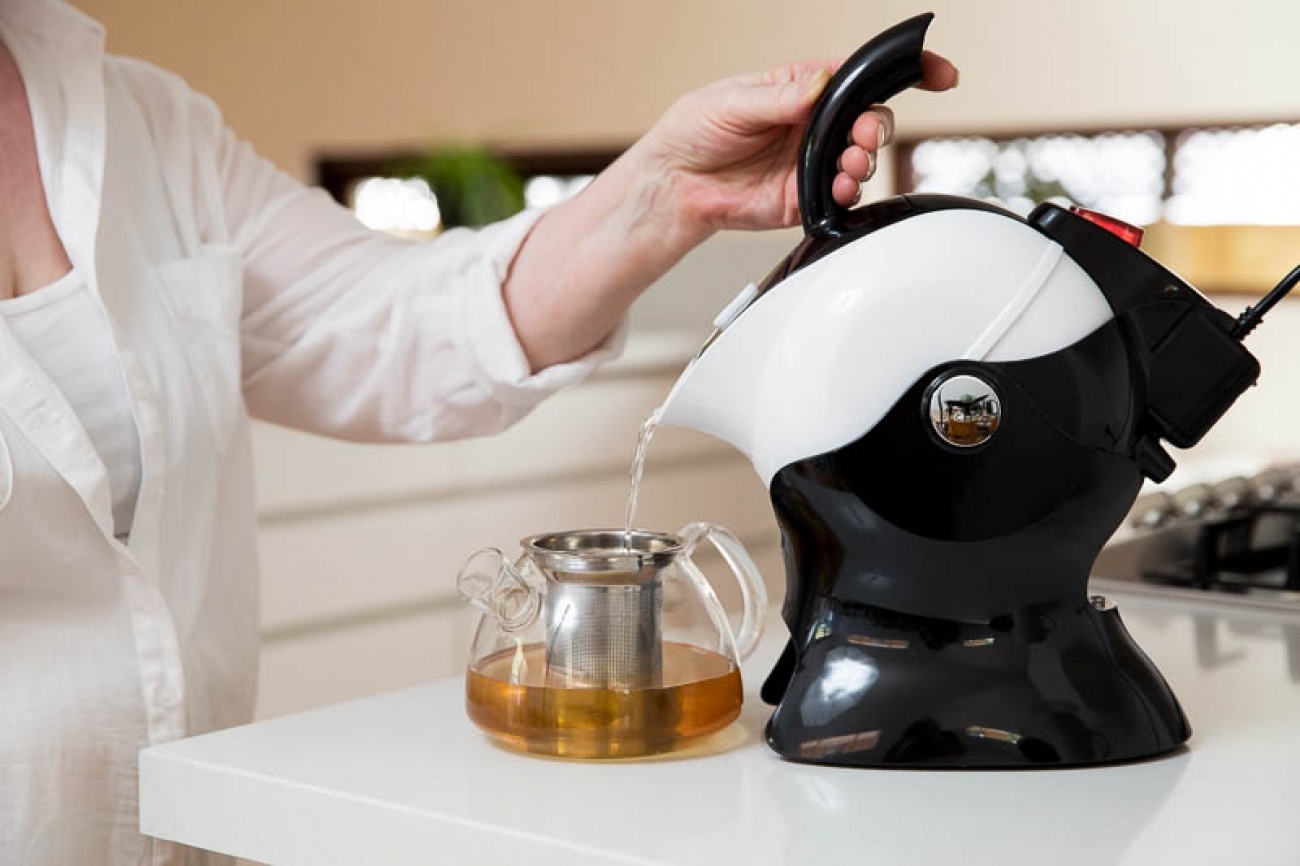 De Uccello ergonomische kantelbare waterkoker is uniek in zijn soort en zeer veilig in gebruik. Het gebruik van de waterkoker is zeer geschikt voor mensen met beperkte kracht en mobiliteit. De waterkoker heeft namelijk een uniek kantelmechanisme dat met 1 vinger bediend kan worden waardoor er geen kracht op uw handen en polsen komt te staan . Het ronde design zorgt ervoor dat het water in de ideale inschenk positie verplaatst, in combinatie met de taps toelopende schenktuit zorgt dit voor een zeer veilig geheel en maakt de kans op spetteren en morsen nihil . De anti-slip voetjes aan de onderzijde van het frame zorgen ervoor dat de waterkoker goed op zijn plek blijft.