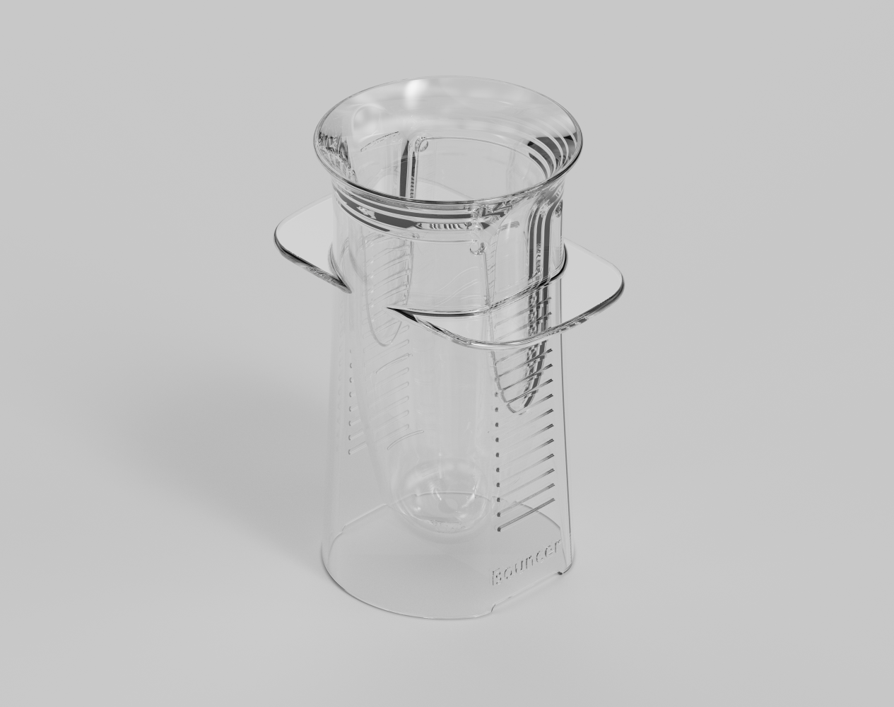 De beker heeft een stabiele, brede basis en een geribbelde buitenkant met ‘gevleugelde’ handgrepen. Hierdoor ligt hij prettig in de hand en is hij op verschillende manieren vast te pakken. De tulpvormige bovenkant helpt morsvrij drinken, terwijl de wijde opening en conische binnenkant ervoor zorgen dat je niet met je hoofd naar achteren hoeft te kantelen.