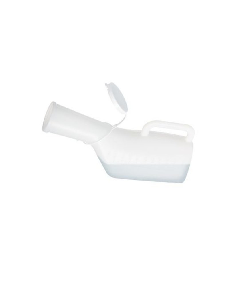 Door de grote opening van de hals en het van hoog naar laag lopen van het urinaal loopt de urine altijd goed weg naar beneden en kan dit nooit in de hals blijven staan en gaan lekken of morsen. Wij adviseren het urinaal altijd af te sluiten met dop en rechtop te zetten of gebruik te maken van het urinaalhouder dat hier speciaal voor ontwikkeld is .