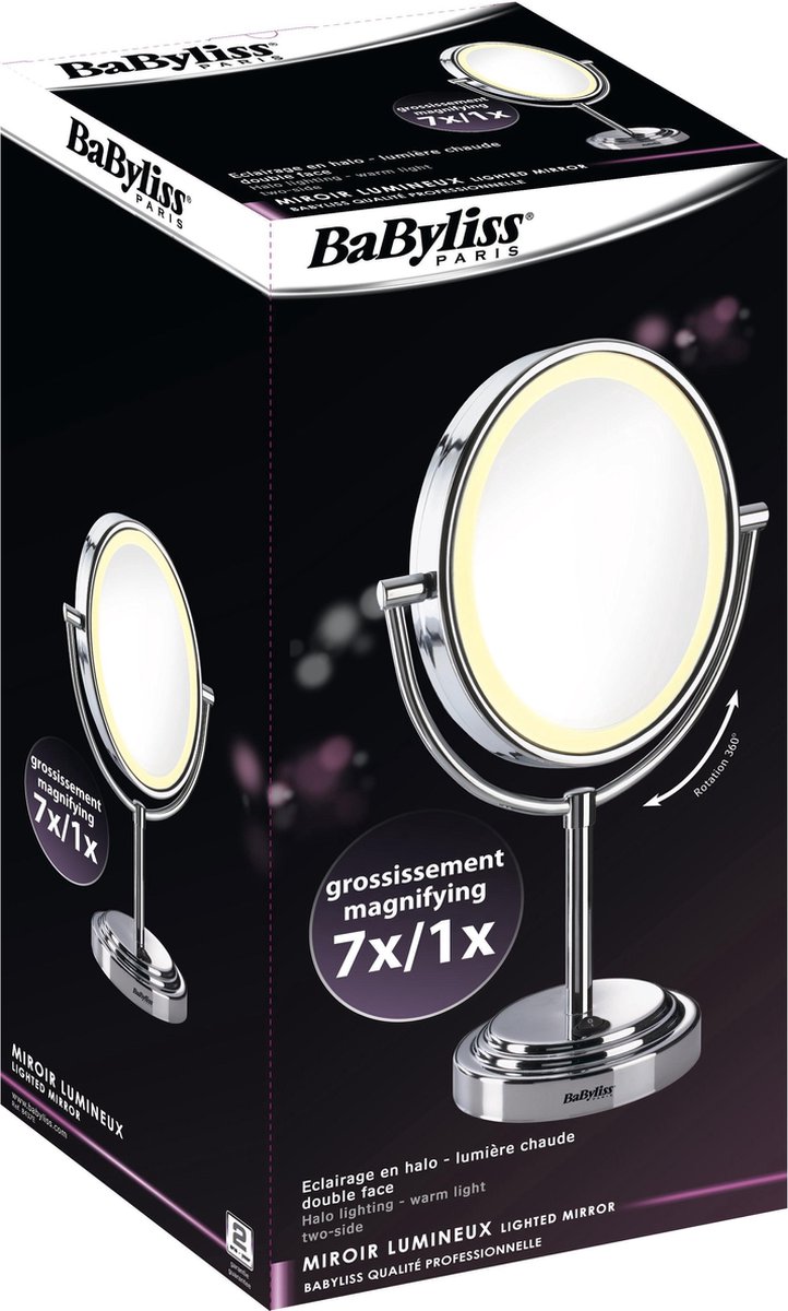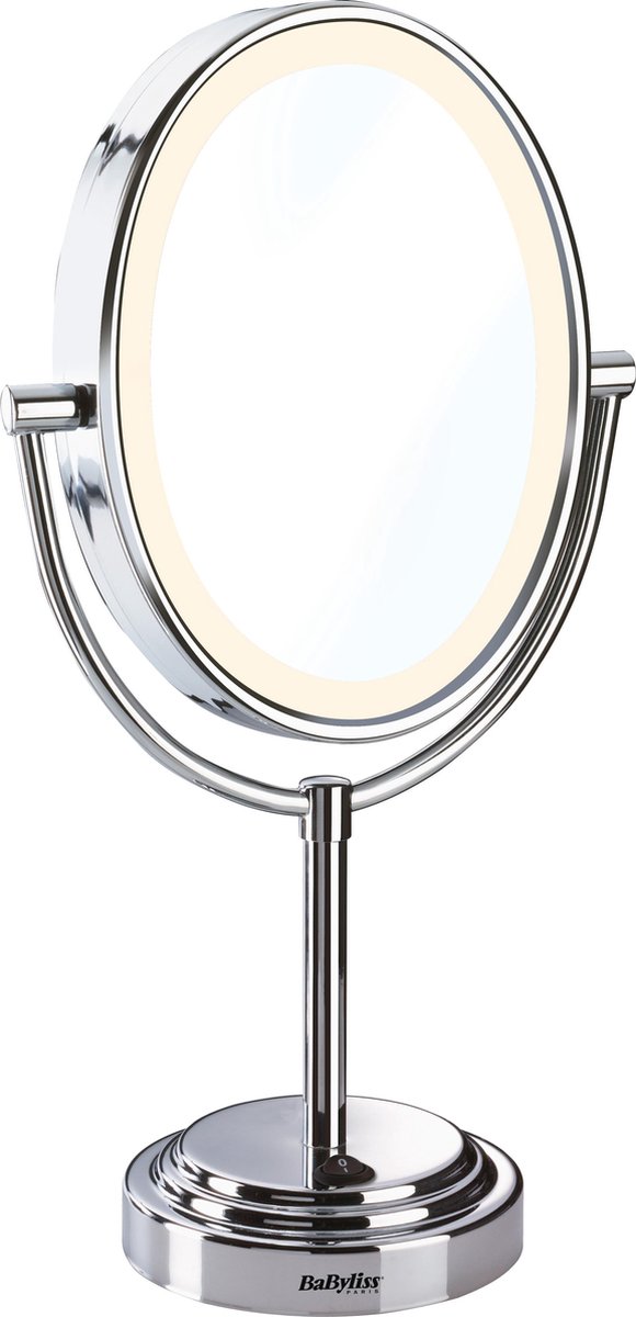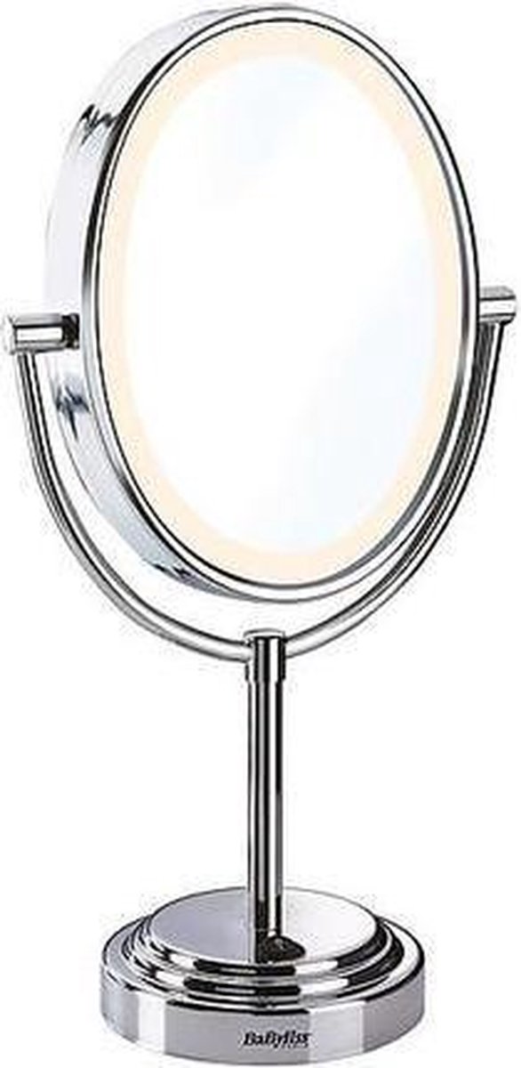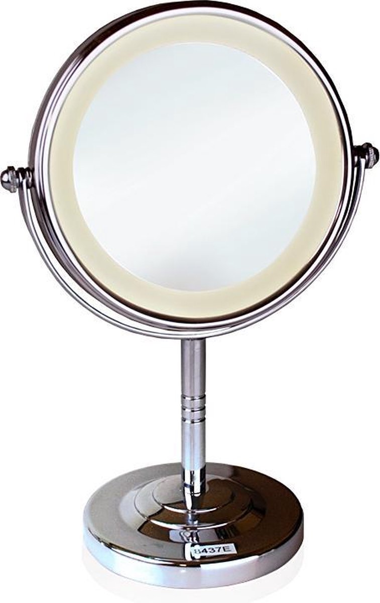 - Type: Speigel met vergroting en verlichting op chromen voet