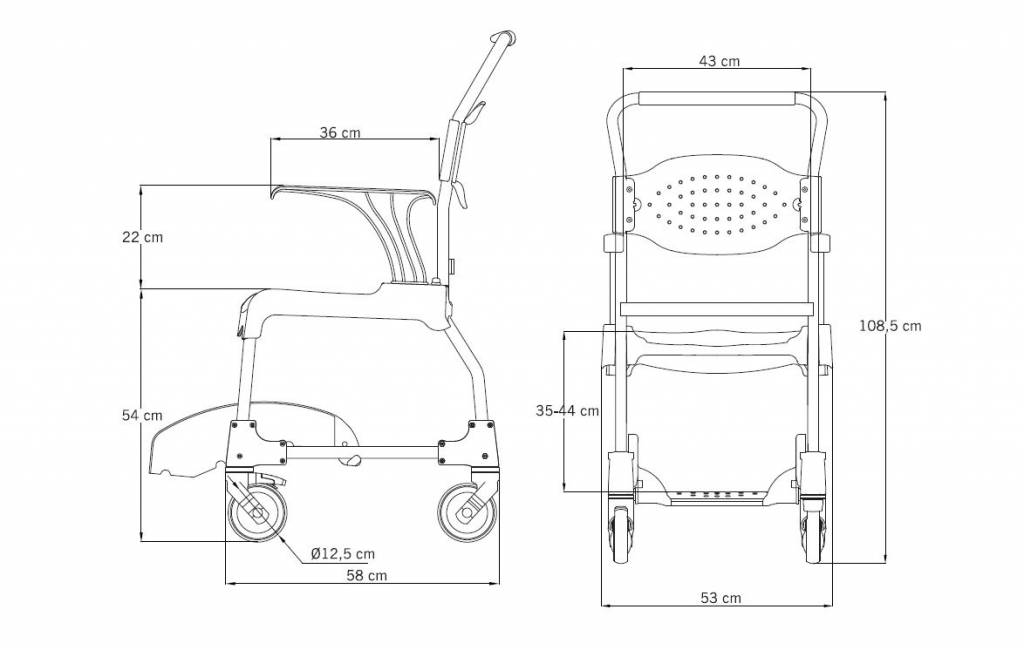 De douche en toiletstoel heeft een ergonomische rugleuning en comfortabele zitting voor een hoog comfort . De zitting heeft aan de achterzijde een hygiene uitsparing zodat tijdens het gebruik op het toilet of in de douche het gemak voorop staat. De opening in de zitting kan tijdens het douchen afgedekt worden met de bijgeleverde deksel. De armleuningen zijn afneembaar zodat een zijdelingse transfer ook mogelijk is . De wielen zijn alle 4 voorzien van een rem zodat de veiligheid gewaarborgd wordt .  De verrijdbare douchestoel en toiletstoel basic wordt standaard geleverd met een opvang emmer voor het toilet gebruik. Ook kan de stoel in het geheel over het toilet worden heen gereden.