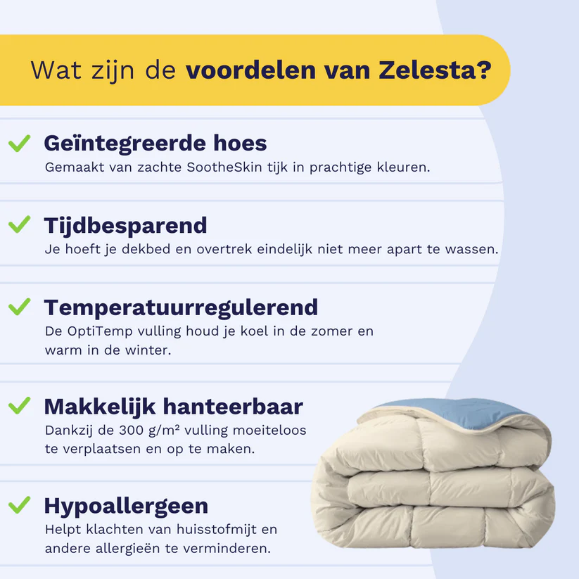 Ervaar het ultieme slaapcomfort met de Zelesta RoyalBed Bluefog & Sand Beach, een innovatief dekbed zonder hoes.