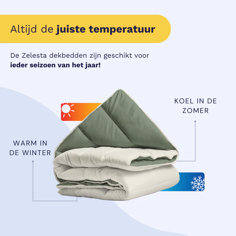 Ervaar het gemak en comfort van de Zelesta RoyalBed Green & Cream ,All Season een innovatief hoesloos dekbed dat uw slaaproutine voorgoed verandert.